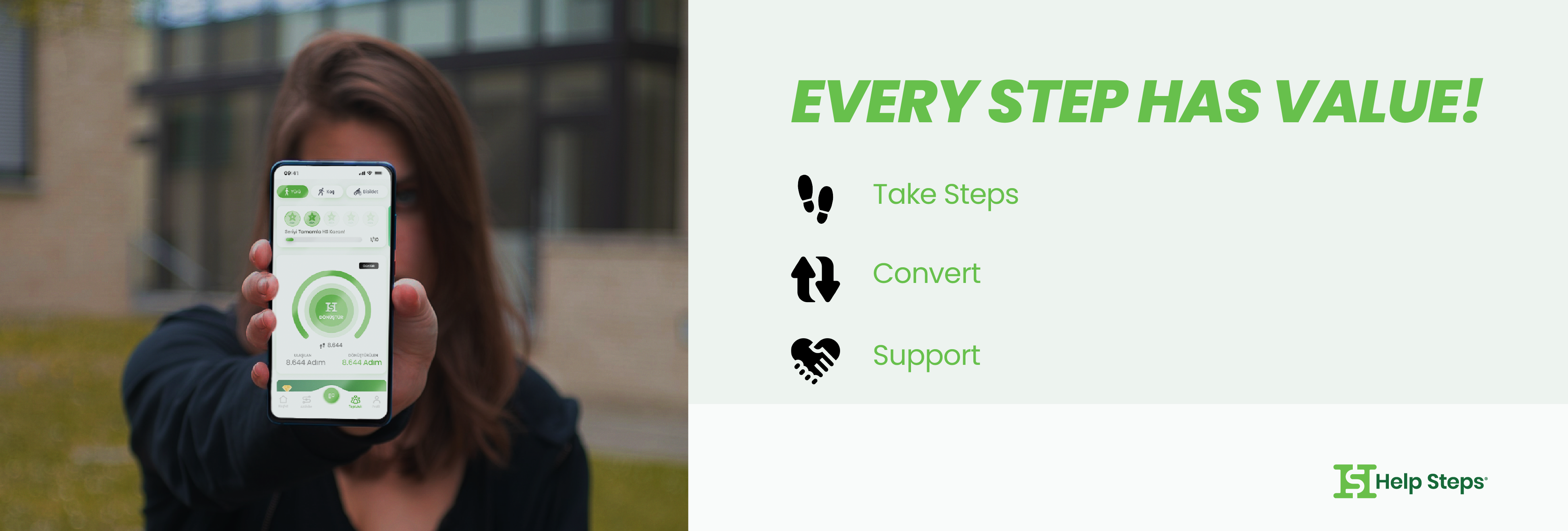 Help Steps is an application to promote health and charity. The application encourages users to help others whilst taking steps.